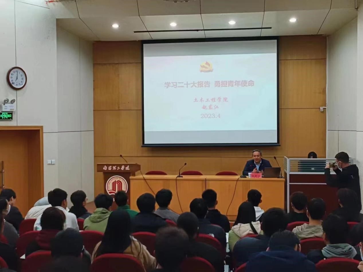 本网讯(特约记者/孙恰)4月23日,土木工程学院分党校第31期入党积极分子培训班开班典礼在中込会馆学术报告厅举行,学院党委委员和本期入党积极分子学员参加。典礼结束后,学院党委书记赵东江同志以“学习二十大报告 勇担青年使命”为主题,为入党积极分子讲深入学习贯彻党的二十大精神专题党课。