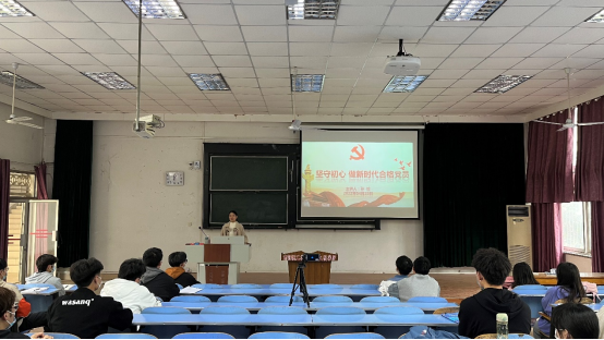 孙恰同志首先通过提问的方式大致了解了同学们的入党动机,接着讲述端正入党动机的意义,帮助同学们树立正确的入党动机。随后,孙老师讲述了合格大学生共产党员的具体要求,要求大家今后时刻以合格党员标准规范自己的行为。
