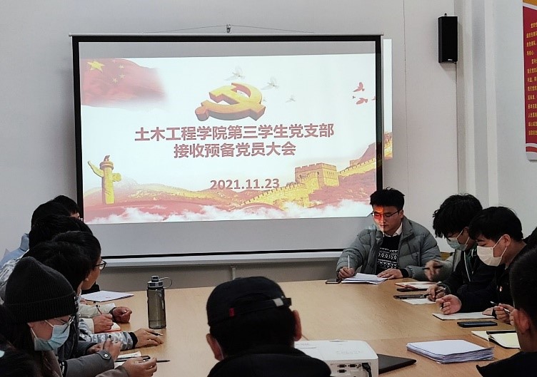 按照中国共产党章程的相关规定,11月23日,土木工程学院第三学生党支部于5号教学楼党员活动室开展接收预备党员大会。第三学生党支部书记陈哲主持本次会议,第三学生党支部全体党员参加本次活动。