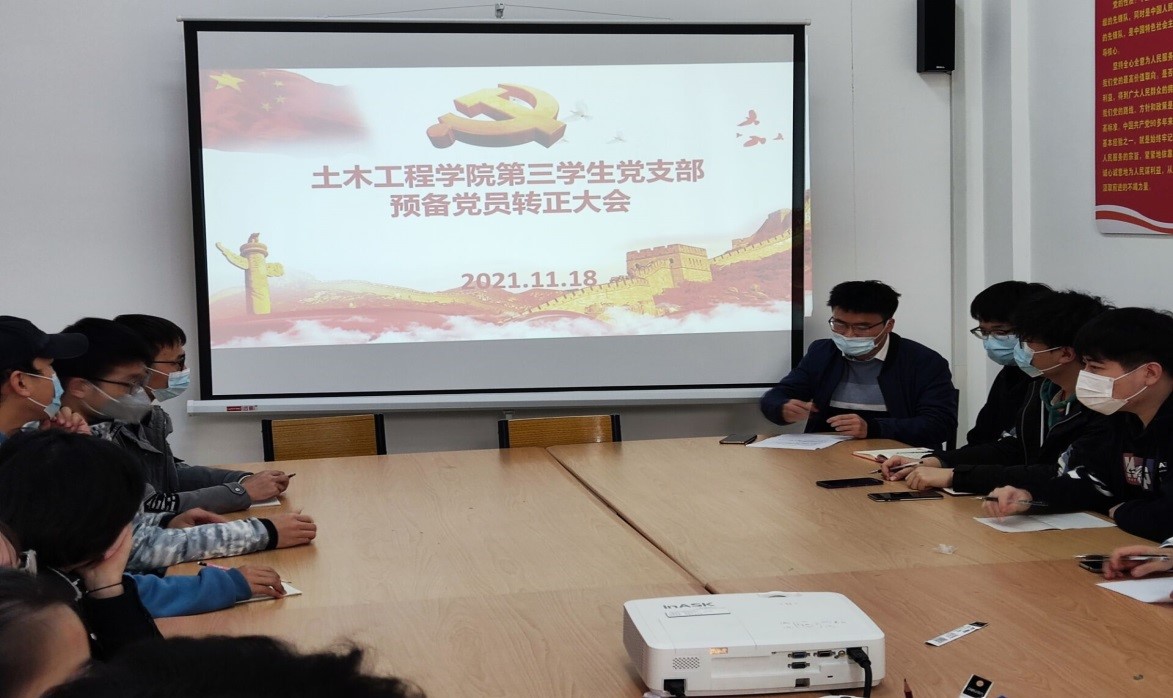 按照中国共产党章程的相关规定,11月18日,土木工程学院第三学生党支部于5号教学楼党员活动室开展预备党员转正大会。第三学生党支部书记陈哲主持本次会议,第三学生党支部全体党员参加本次活动。