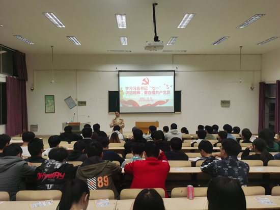 10月14日晚,土木工程学院分党校第28期入党积极分子培训班第四讲在学校7号教学楼201教室举行,学院专职组织员孙恰同志为入党积极分子上了“学习习近平总书记‘七一’讲话精神,做合格共产党员”主题党课。