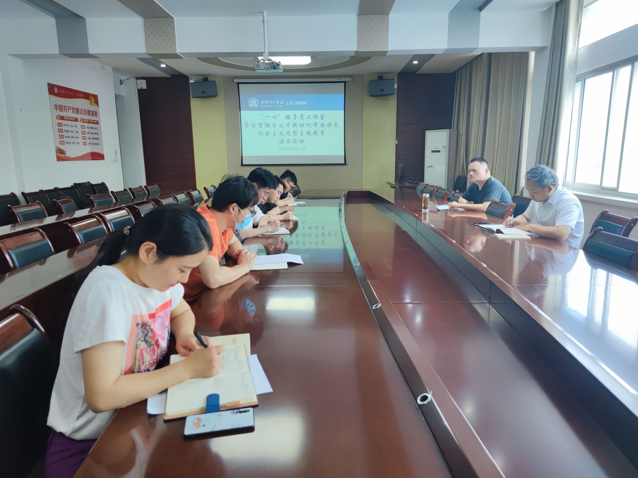 本网讯 (特约记者/张子正)6月12日上午,土木工程学院“一心”辅导员工作室理论学习小组在学院会议室开展学习贯彻习近平新时代中国特色社会主义思想主题教育集中读书学习和交流研讨,学院党委书记赵东江出席,全体辅导员参加,学院党委副书记冯博主持学习研讨活动。
