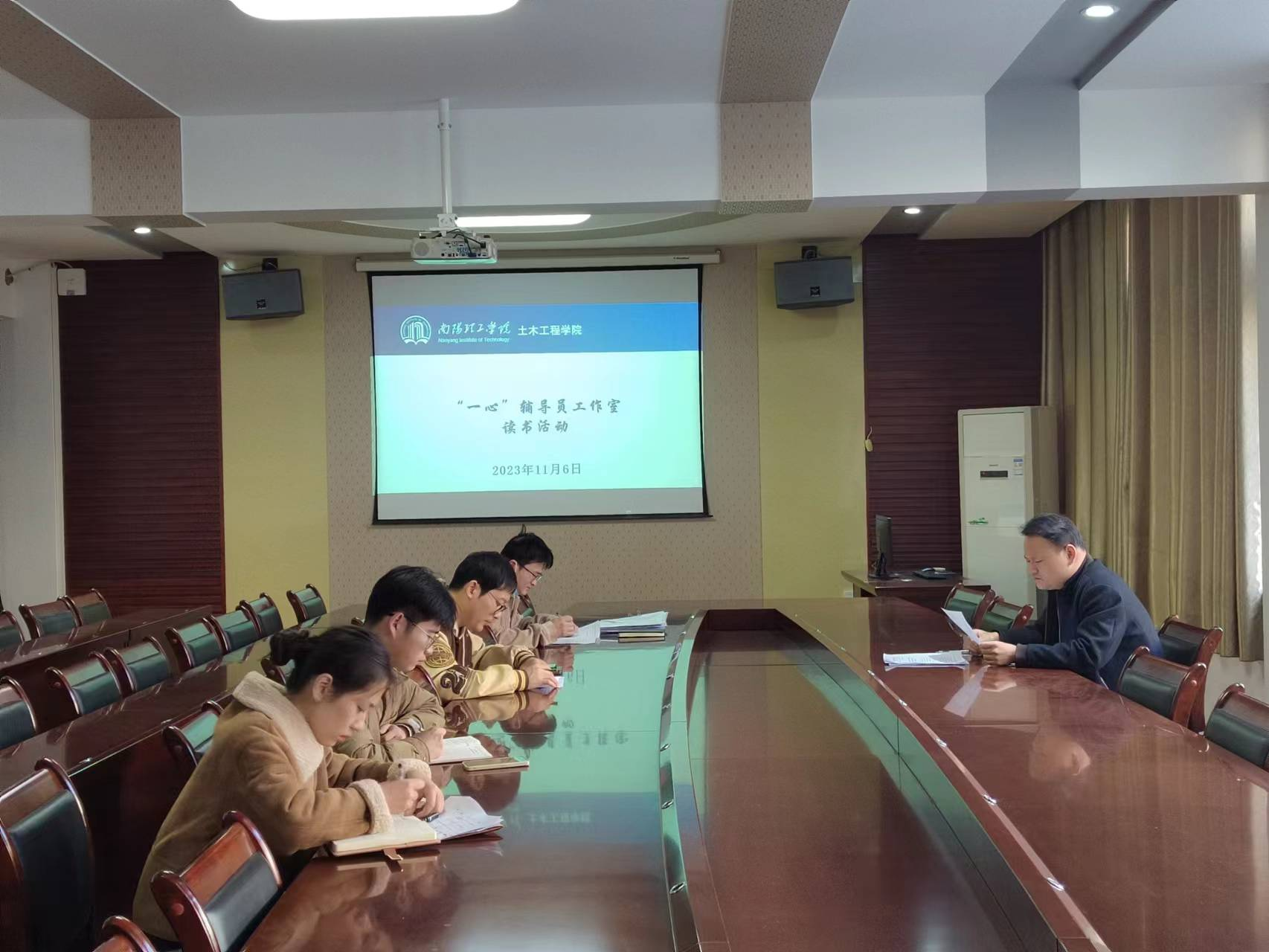 本网讯 (特约记者/张子正)11月6日,土木工程学院“一心”辅导员工作室理论学习小组在学院会议室开展学习贯彻习近平新时代中国特色社会主义思想主题教育集中读书学习和交流研讨。学院党委副书记冯博主持学习研讨活动,全体辅导员参加。