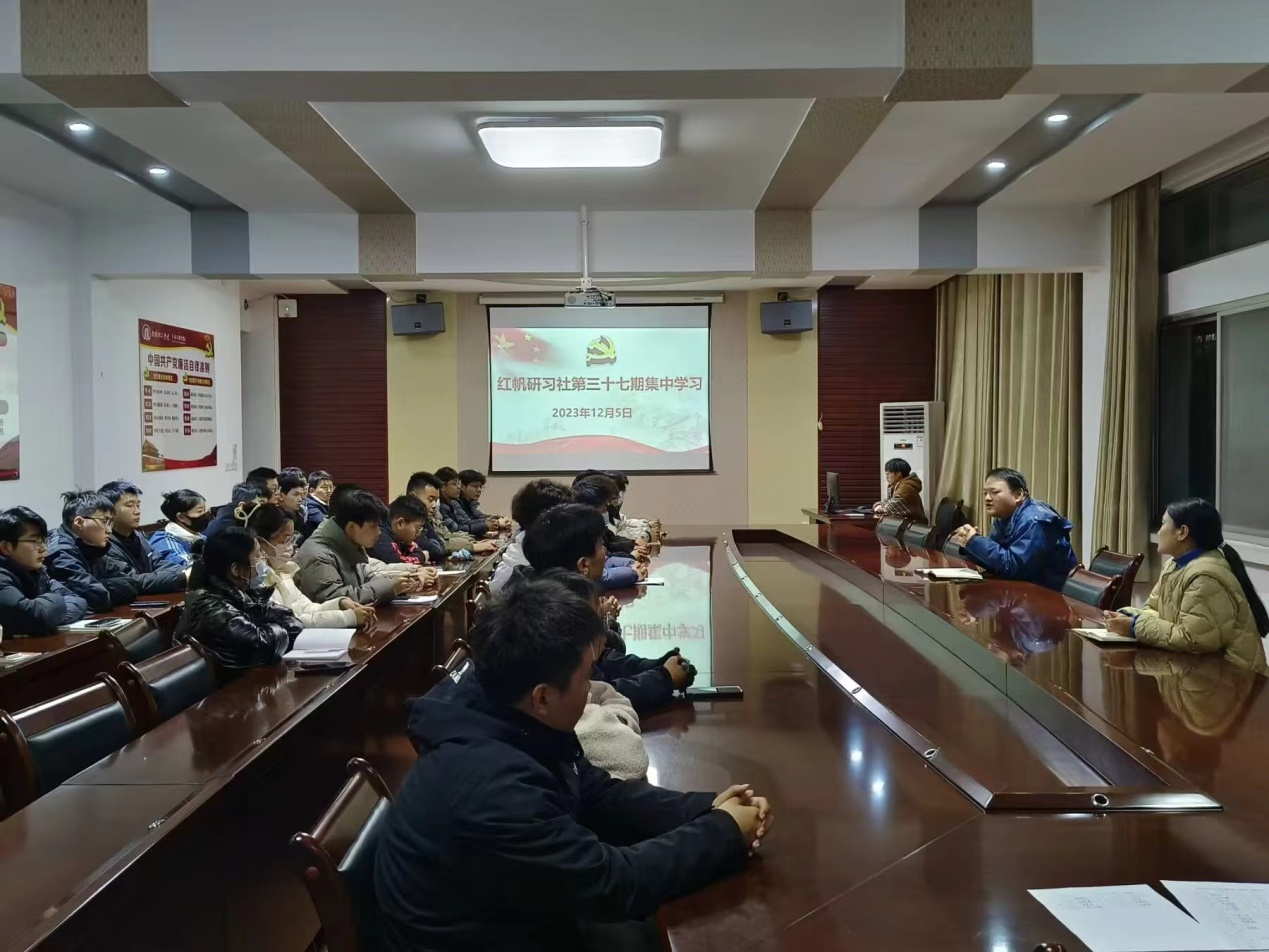 12月5日下午,土木工程学院红帆研习社在二楼会议室开展第三十七次集中学习。学院党委副书记冯博出席,专职组织员孙恰主持,红帆研习社全体成员参加。