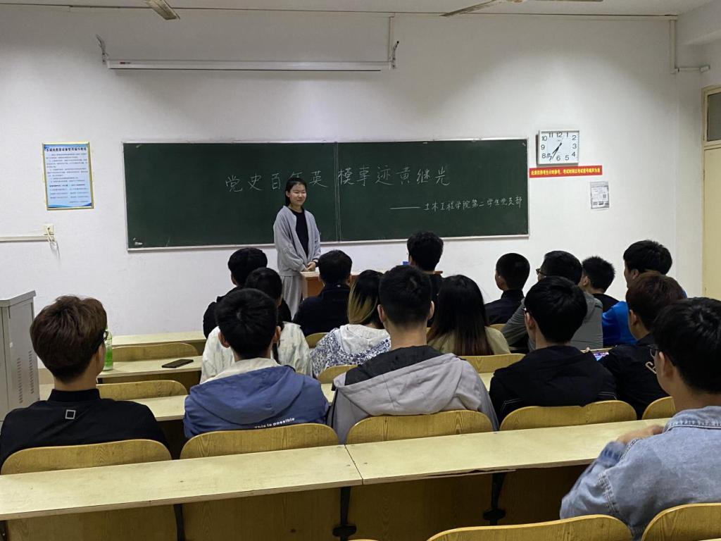 2021年4月5日晚上,土木工程学院第二学生党支部在五号教学楼422教室举办党史学习教育,会议由张恩庆同志主持,第二学生支部全体党员参与活动。