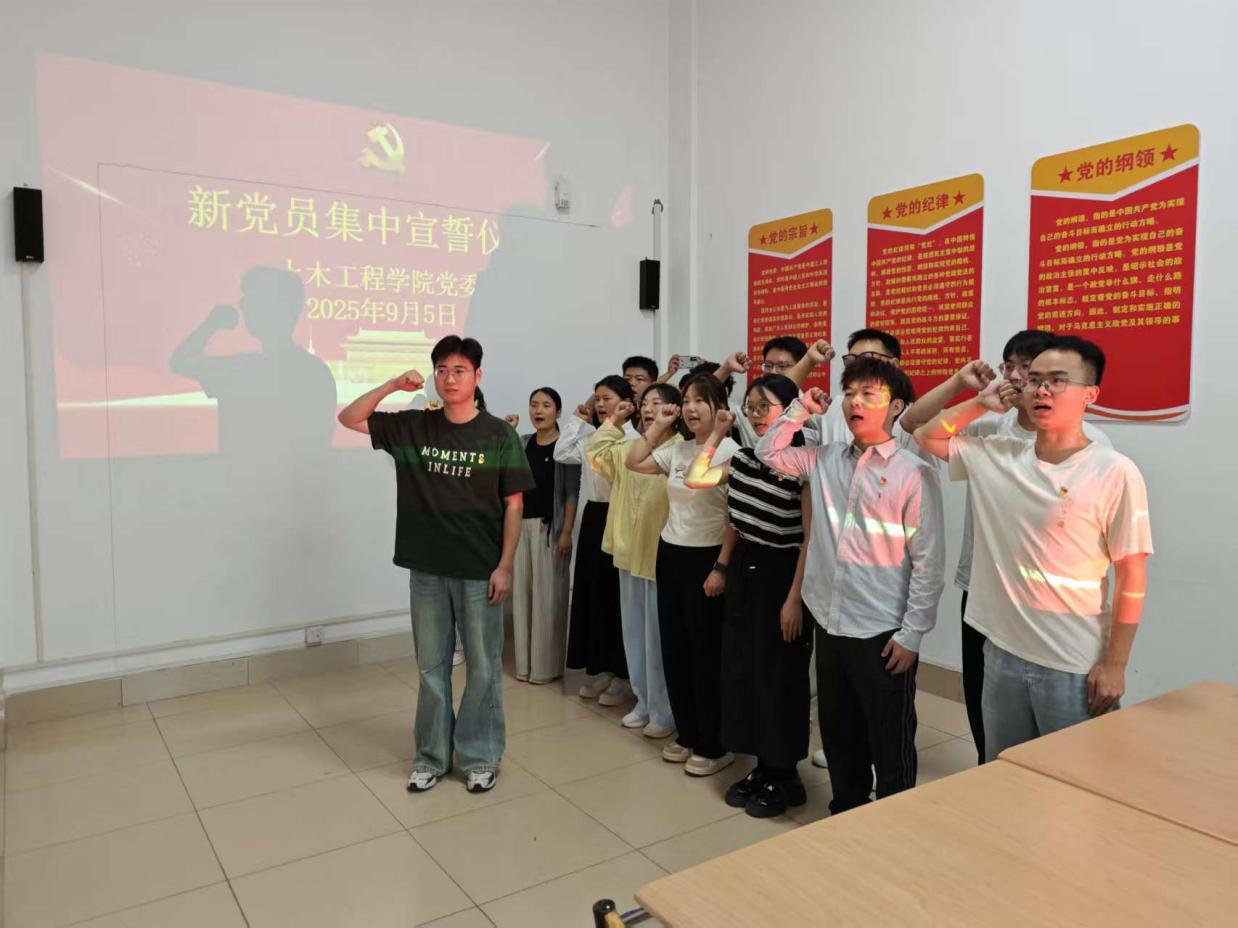 9月5日上午,土木工程学院党委在学院党员活动室举行新党员入党宣誓仪式,学院专职组织员孙恰主持,各学生党支部书记和上半年新发展的预备党员参加。