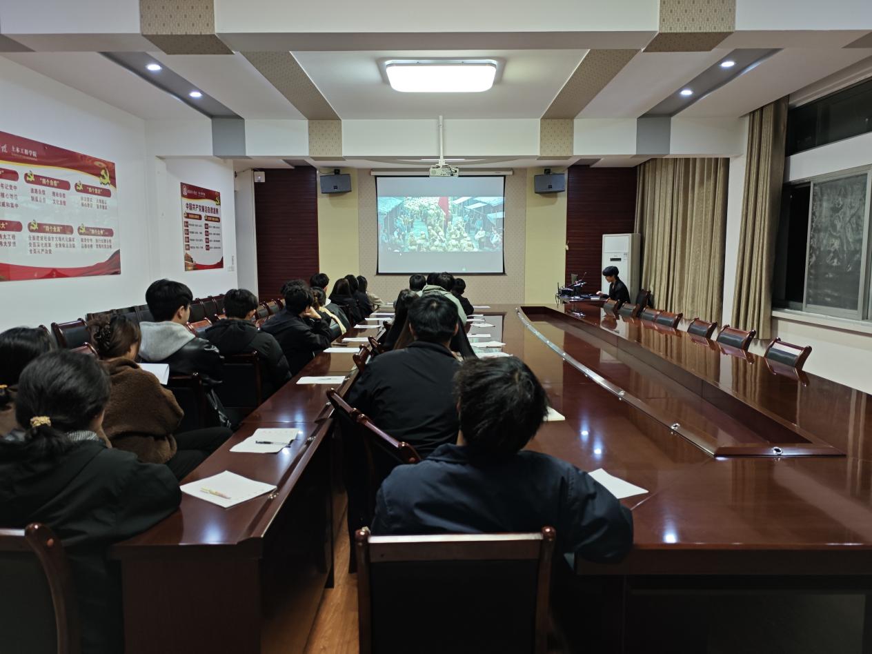 11月12日晚,土木工程学院分党校于五号教学楼二楼会议室组织第36期入党积极分子观看红色电影并演唱红歌,全体培训班学员参加。