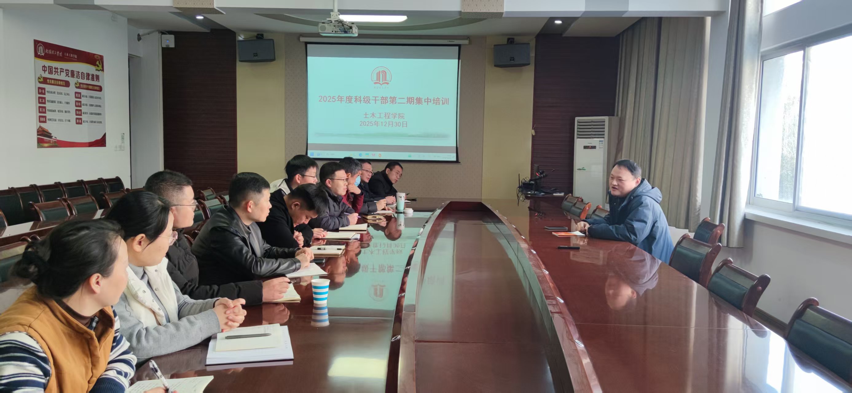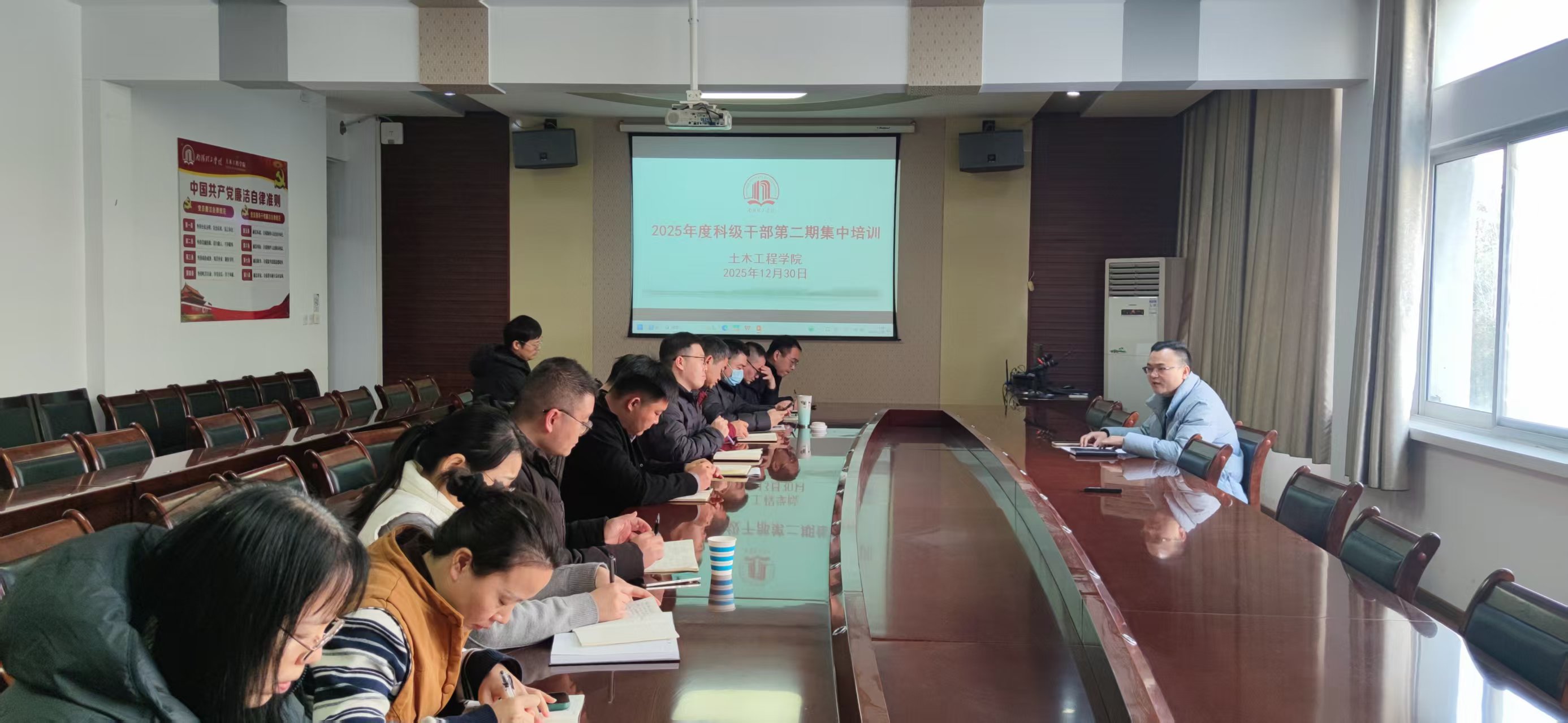 本网讯(特约记者/孙恰)为进一步提升干部队伍的政治素养、业务能力和履职水平,12月30日,土木工程学院在5号楼会议室举办了2025年度第二期科级干部集中培训。学院领导班子成员分别授课,全体科级干部参加了培训。
