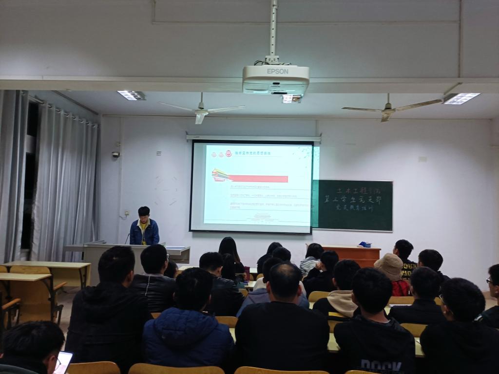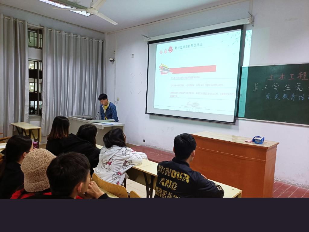 11月23日,由17级道桥二班学生党员王锡庆担任主讲人,在土木工程学院党员活动室,开展了我院学生党支部2020年党员教育培训计划的第八讲,本次培训的主题是“在实践中坚持党的基本路线不动摇”。我院第三党支部全体党员参加了此次培训。