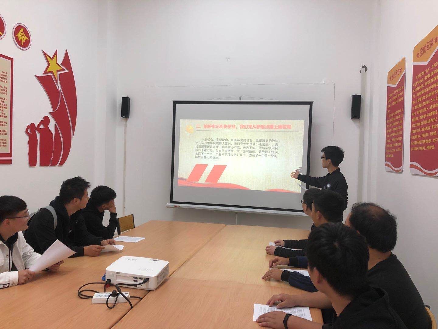 党课伊始,主讲人彭彦庆同志带着大家回顾了近代以来,我党为给中国人民谋幸福、中华民族谋复兴,历经的艰辛抗争,走过的辉煌历程;随后,立足新的历史起点,阐述了“不忘初心、牢记使命”的重要性;最后,从统揽“四个伟大”的角度说明了我党聚力完成历史使命所要做出的行动。会后,同志们深刻思考了新时代党的历史使命的重要内涵并积极交流了各自的心得。