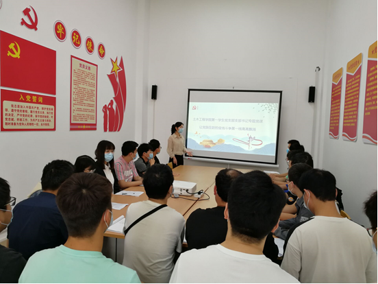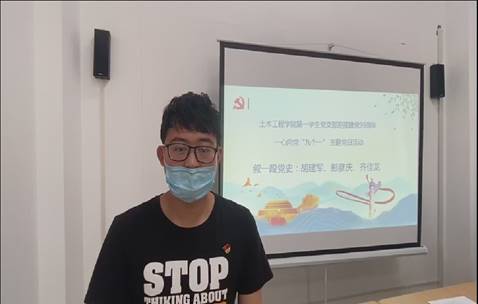 为迎接中国共产党成立99周年,营造爱党拥党的浓厚氛围,加强学生党员的理想信念教育,展现学生党支部新气象。土木工程学院第一学生党支部于6月18日上午,在土木工程学院党员活动室进行一心向党“九个一”主题党日活动。