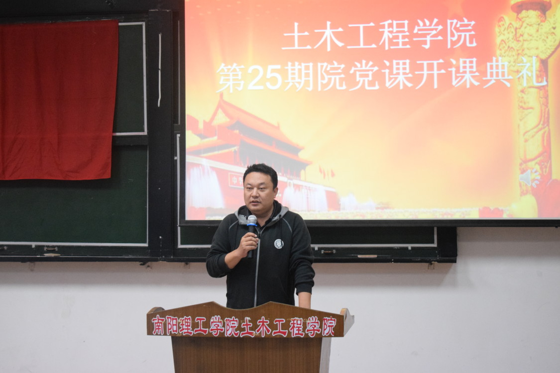 伴随着慷慨激昂的团歌,开课典礼拉开序幕。随后任朝斌老师致辞,他宣布第25期党课正式开幕。