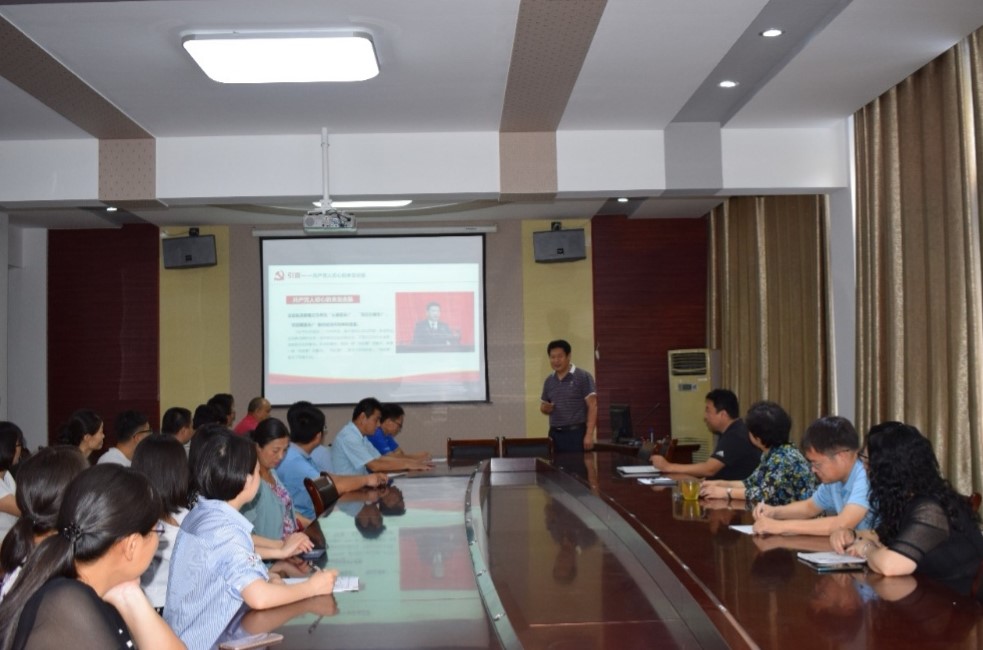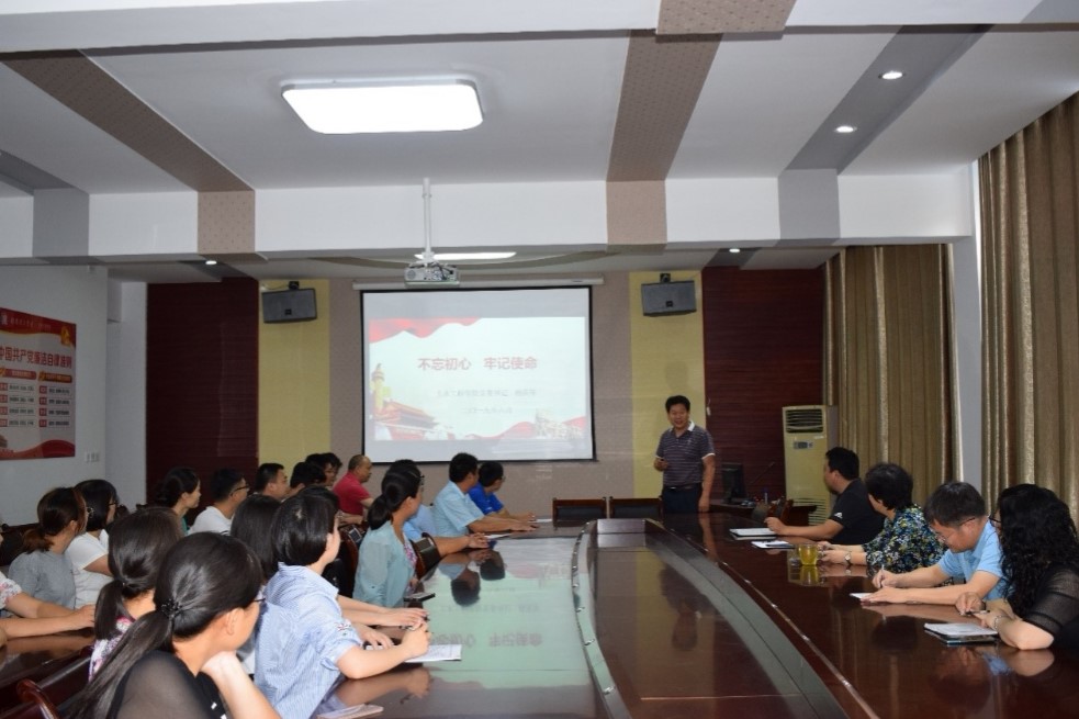 杨庆年书记从初心的由来和力量引入,梳理了中国共产党人初心的来龙去脉,解释了中国共产党人“不忘初心、牢记使命”的科学内涵,结合我国新时代特征阐述了“不忘初心、牢记使命”的重要意义,立足我院工作实际指明党员教师怎样做到“不忘初心、牢记使命”。他希望全体党员教师要牢记为中华民族谋复兴的伟大使命和远大目标,坚定实现中华民族伟大复兴的信念,用习近平新时代中国特色社会主义思想武装头脑、指导实践、推动工作,以优异的工作成绩为学院事业发展做出贡献。