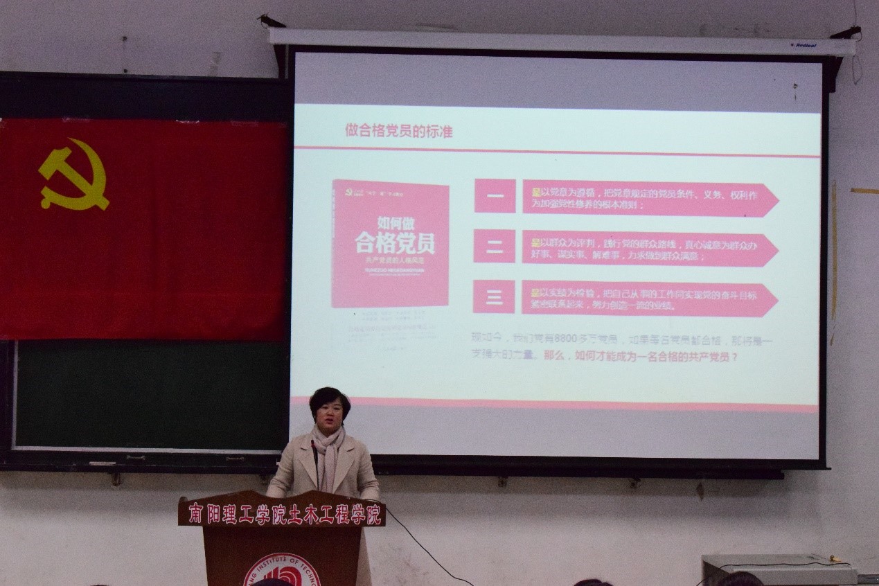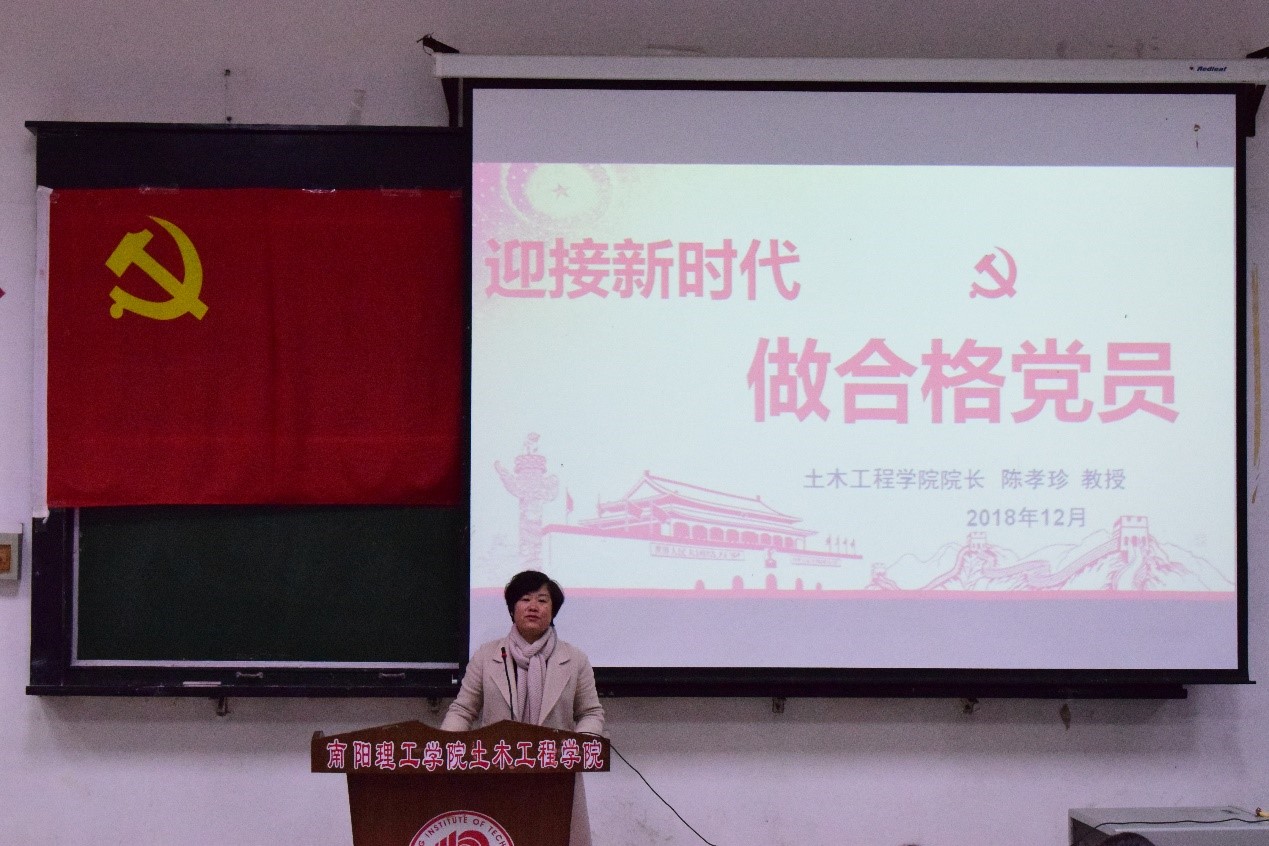 12月7日下午,土木工程学院院长陈孝珍教授在五阶一教室为党员上党课,号召大家“迎接新时代,做合格党员”。土木工程学院部分党员教师和全体学生党员同志参加。