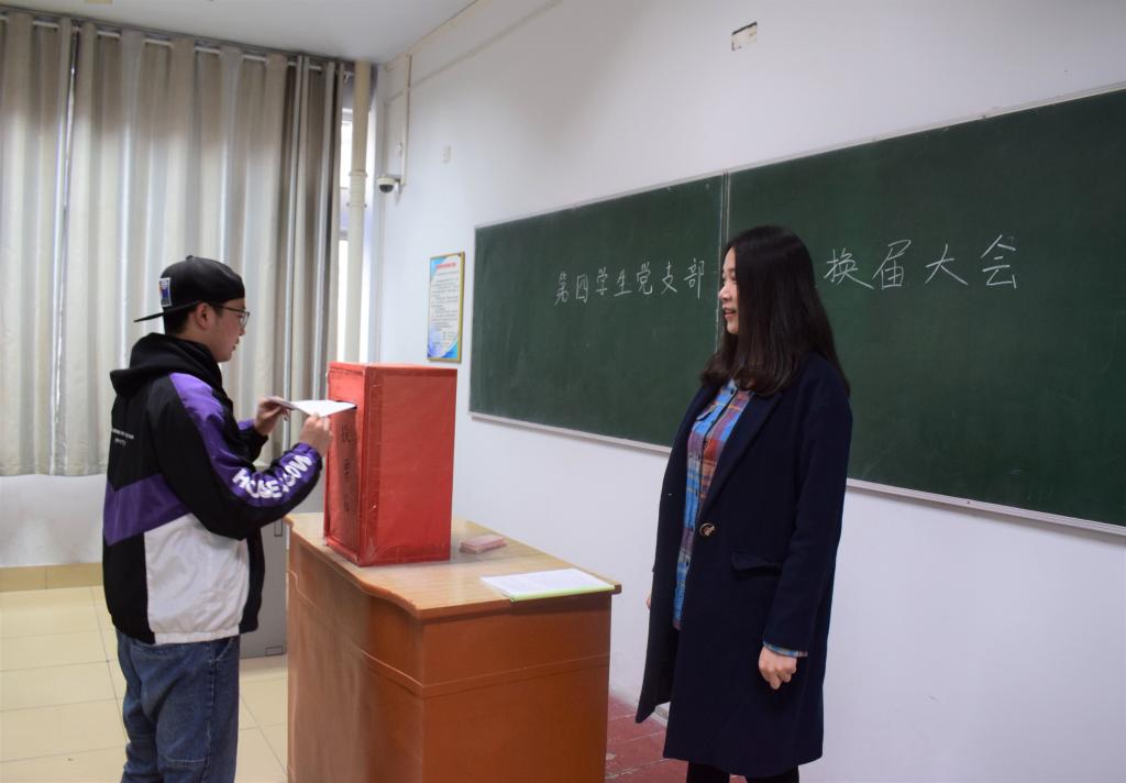 10月31日下午四时许,为响应校党委号召,使学生党支部工作能够有序开展,依照我校相关文件要求,我院于五号教学楼5303教室召开了第四学生党支部换届选举大会。出席本次活动是袁可佳老师及8名正式党员与10名预备党员。