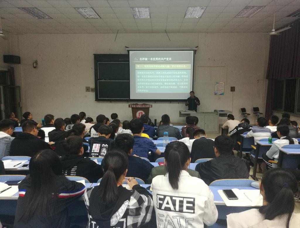 为提高我院预备党员的党性修养,积极开展我院党政工作,落实党内政策,10月11日晚,我院于五号楼五阶一教室举办第二节党课培训,此次培训由党委副书记任朝斌老师主持。出席本次培训的是17级辅导员任寰老师,参加此次培训的有积极向党组织靠拢的17级、18级的各班同学。