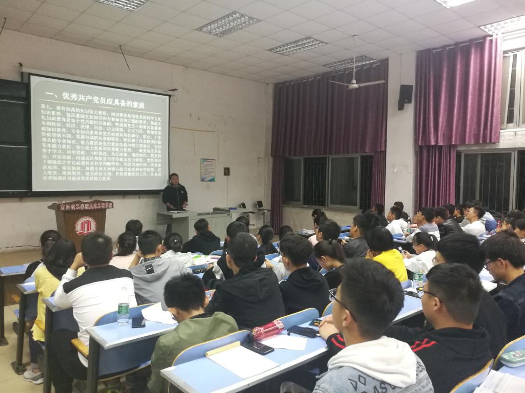 在此次培训中,任书记结合自己的经验从“优秀共产党员应具备的素质”和“怎样做一名优秀的共产党员”两个方面为同学们讲述了如何成为一名优秀的共产党员。在培训过程中,任书记从优秀的共产党员应该具备的九个方面为同学们细致的讲解了一个共产党员应该具备的素质;紧接着,任书记又从“坚持用科学理论武装头脑,坚定理论信念”、“努力提升,增长本领”、“立足自身,扎实学习”三个方面为同学们讲述了如何做一名优秀的共产党员。最后,任书记督促同学们“好好学习,才能天天向上”。
