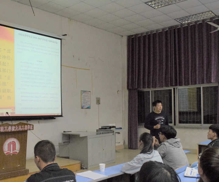 活动开始,任朝斌书记宣读参加宣誓的预备党员名单,紧接着任寰老师带领预备党员光荣宣誓,入党仪式在庄严肃穆的氛围下进行完毕。接着院党课培训正式开始,由我院党委书记杨庆年老师进行第一讲。杨书记通过讲述中山大学任命百名“部级干部”,部分高校学生干部有“摆架子”、“耍官威”等不良风气和湖南城市学院开除土木工程专业大一学生王英俊三件事开始了本次的培训。在会议中杨书记通过入党动机与入党程序、大学生先锋模范作用的内涵、大学生先锋模范作用中存在的问题及原因和充分发挥大学生党员先锋模范作用的主题途径四个方面系统的为同学们充分阐述了“如何充分发挥大学生党员的先锋模范作用”。在培训过程中,杨书记还引用习近平总书记的话“青年一代有理想、有本领、有担当,国家就有前途,民族就有希望”和总书记指出的“青年党员干部应当勤奋好学、应当尽责履行、应该自觉肩负兴国重任、巩固思想防线”四点具体要求鼓励同学们应当奋发图强,掌握知识本领,履行使命担当。培训最后,杨书记号召大家“做无愧于祖国和时代的追梦人”,至此本次培训圆满结束。