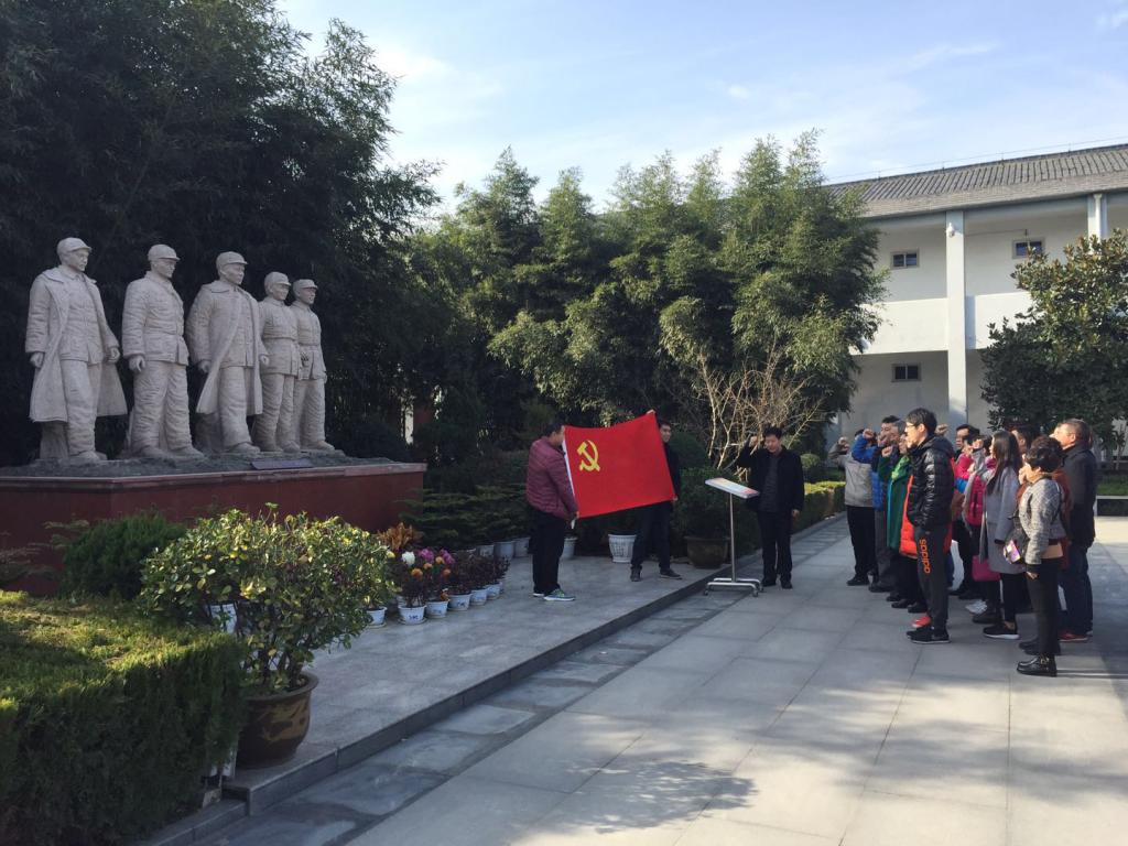 不忘初心,牢记使命,进一步深入学习宣传贯彻党的十九大会议精神。来到确山竹沟革命纪念馆,党委书记杨庆年带领全体党员面对党旗重温入党誓词,并组织大家观看实物展览,了解竹沟革命根据地的形成过程和抗战时期中共中央中原局领导中原人民在革命战争中发挥的重要历史作用。随后,大家共同参观了中共中央中原局、中共河南省委、新四军八团留守处所在地等革命旧址,亲手触摸革命先烈们工作时用过的桌椅、油灯、笔架,休息时躺过的床铺,简陋的办公环境。通过重温红色经典考察学习,受到了一次深刻的党性教育,接受了一次心灵的洗礼,更深入地了解了老一辈革命人的英雄事迹和革命精神,大家无不被革命前辈一心为人民、一心为革命的伟大与崇高而深深感动,从而增强了党员的党性认识和爱国精神。