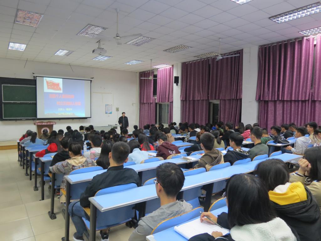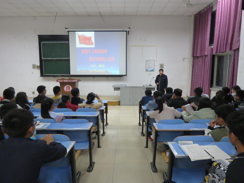 (宣传部 文/刘园园 图/刘园园)为使入党积极分子了解共产党的精神内涵,认识到党的先进性,坚定信仰,10月18日,土木工程学院于五号楼五阶一教室举办以“加强个人素质培养,树立正确的人生观”为主题的讲座。党委书记杨庆年老师出席并主持讲座,各班入党积极分子参加此次讲座。
