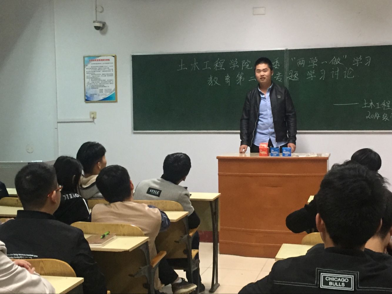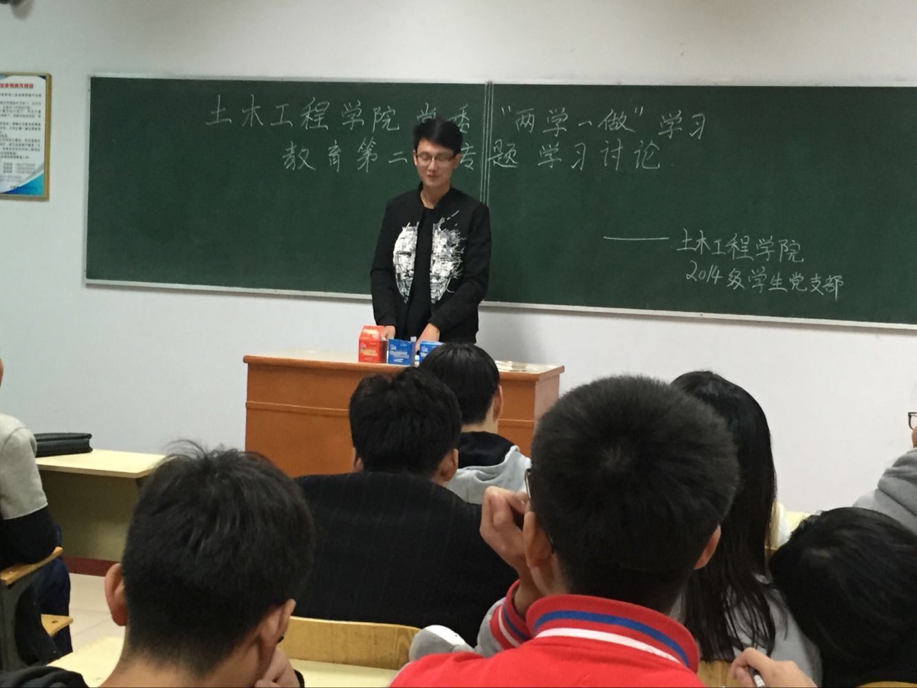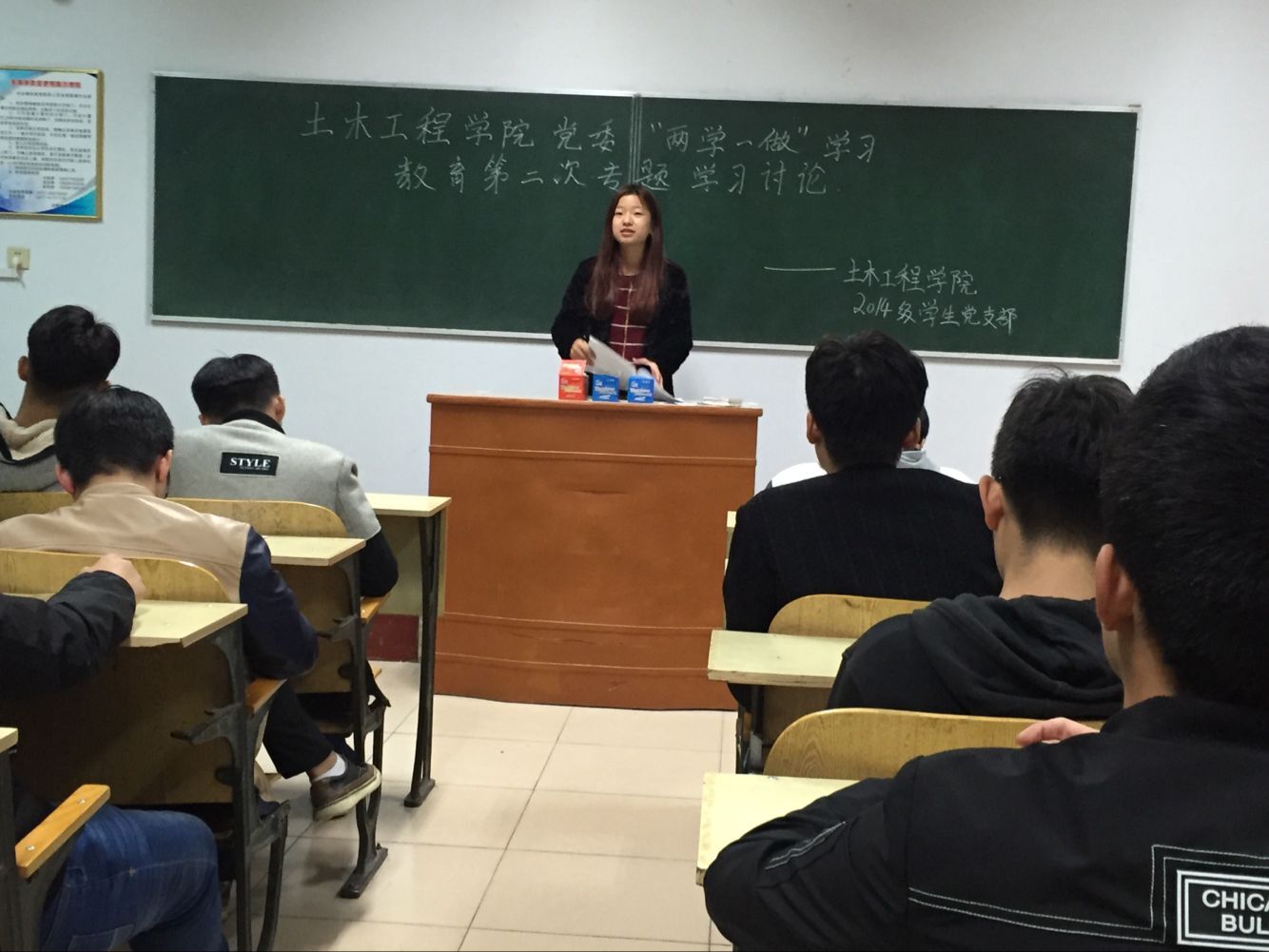 10月23日晚,2014级学生党支部“两学一做”学习教育第二次专题学习讨论会在5301教室举行,共有24名学生党员参会,会议由党支部书记段亚楠老师主持。