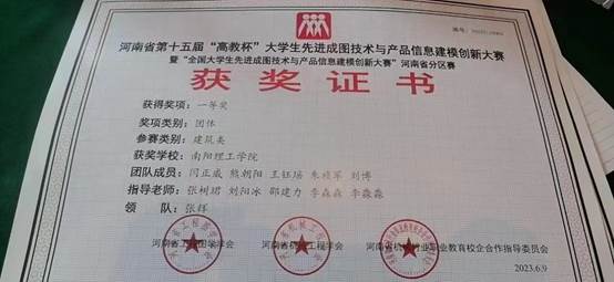 土木工程学院在河南省第十五届“高教杯”大学生先进成图技术与产品信息建模创新大赛中荣获佳绩