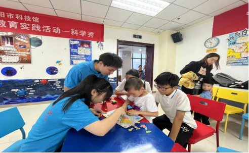 6月30日,土木工程学院“筑梦未来,科普童行”大学生社会实践志愿服务团队来到南阳市科学技术馆,开展以科学普及为目的,养成科学思维习惯的社会实践活动。通过该社会实践活动的开展,让学生家长及时发现孩子们的兴趣和特长,活跃孩子们的思维,使其创新能力得到发展。通过借助实体模型给小朋友讲解道路桥梁结构知识,为孩子们普及桥梁种类以及相应的特征知识,使学生们的科学种子生根发芽。