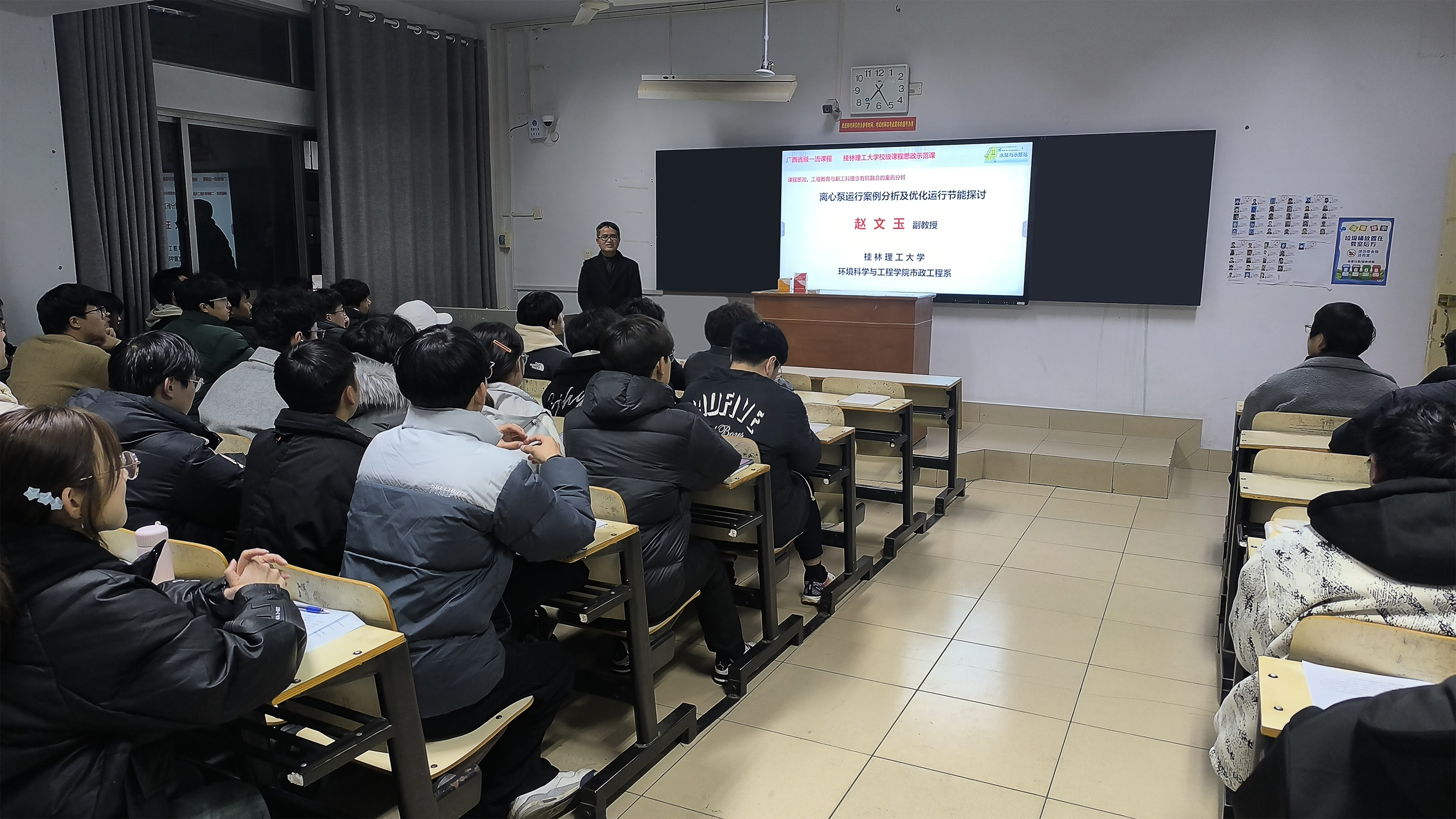2025年2月26日下午,桂林理工大学副教授、水泵应用技术专家赵文玉老师应邀来土木工程学院进行专题讲座。赵文玉老师开展了课程思政、工程教育及新工科理念与工程案例有机融合的“离心泵运行问题案例分析及优化运行节能探讨”专题讲座,我院给排水科学与工程专业70余名师生参加了交流会。