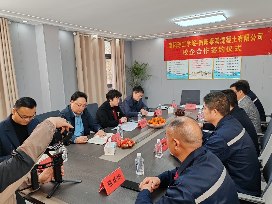 为深化产教融合,推动技术创新与人才培养协同发展和毕业生就业工作, 3月13日,土木工程学院与南阳市泰基混凝土有限公司举行校企合作签约仪式暨高性能混凝土研发中心揭牌仪式。土木工程学院院长陈孝珍、党委书记田进军、南阳市泰基混凝土有限公司总经理陈卫东、技术总监李长洪等参加仪式。