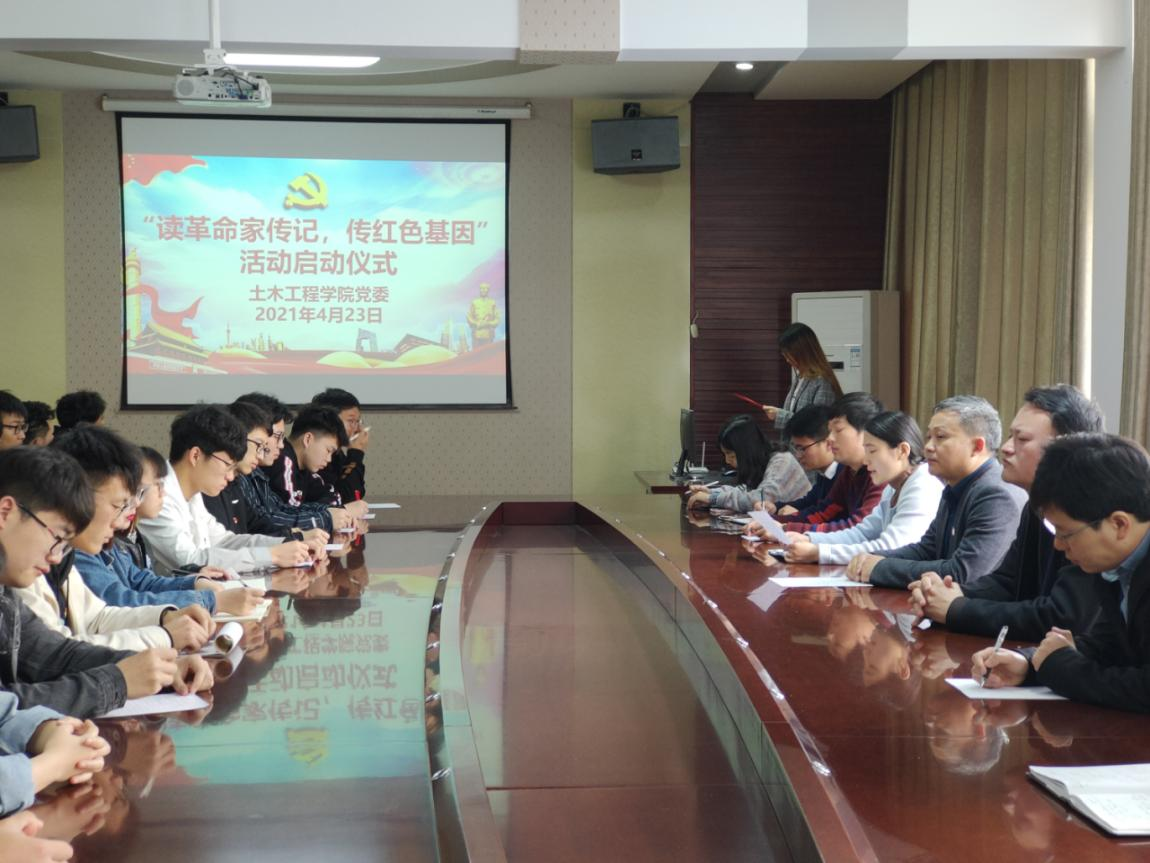 4月23日,恰逢“世界读书日”,土木工程学院在学院会议室举行“读革命家传记,传红色基因”活动启动仪式,院党委书记赵东江同志、党委副书记冯博同志、专职组织员孙恰同志、学生工作办工室副主任张子正同志、教师党员代表和全体学生党员出席本次活动。