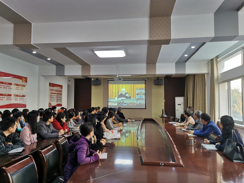 土木学院全体教师和学生代表在学院会议室集中收看学习了教育部陈宝生部长11日下午宣讲报告会视频。