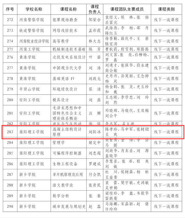 根据河根据河南省教育厅《关于公布首批河南省一流本科课程认定结果的通知》,我院《混凝土结构设计原理》课程被认定为省级线下一流课程。