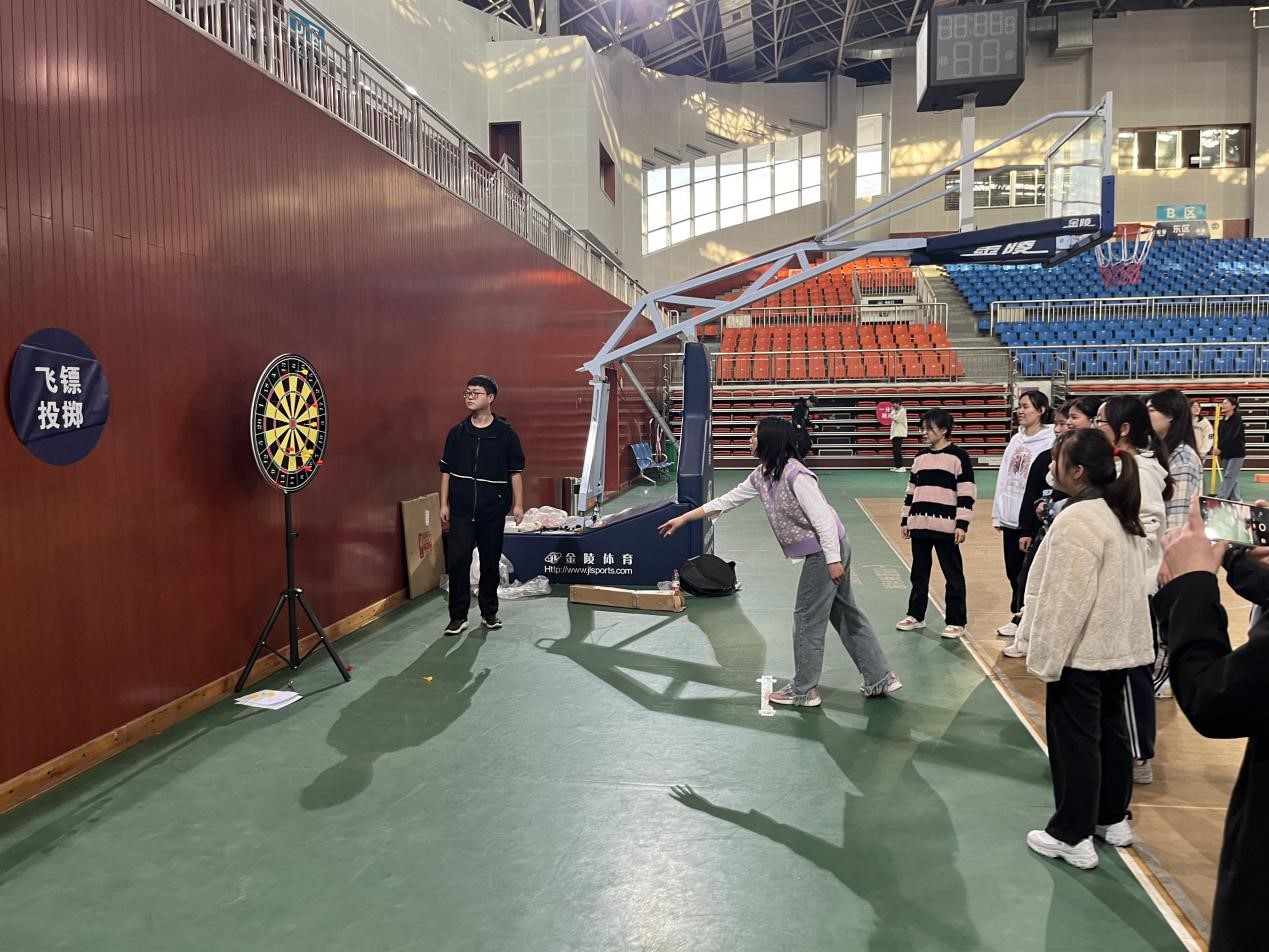 活动开始前,土木工程学院女生在体育馆门口集合,自行选择分组,六人一组分别进行“趣味”比赛活动。 活动包括:一圈到底、飞镖投掷、你比我猜、摸石头过河、套圈、同心击鼓、一分钟跳绳等项目,赛场上气氛轻松愉快,高潮迭起,大家在游戏中运动,在运动中游戏,享受着运动带来的快乐和幸福。