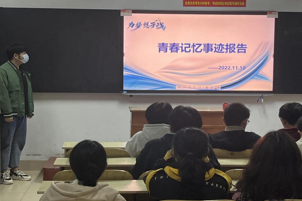本网讯(特约记者/张子正)为帮助2022级新生树立正确的人生观和价值观,更好的培养其“逐梦”意识。11月10日晚七点,土木工程学院于五号教学楼5421教室举办青春记忆事迹报告会,李昂学长主讲,2022级道桥一班全体同学参加。