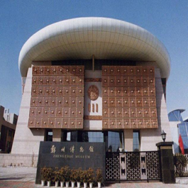 郑州博物馆创立于1957年,是地方综合性博物馆,原址位于碧沙岗公园内。长期以来,利用自用优势,致力于郑州地区的历史研究、文物保护、陈列展览、社会教育等,接待了大批观众,为河南省爱国主义优秀教育基地,是展示郑州悠久历史和灿烂文化的重要窗口。随着社会的发展、城市的变化、精神文明建设的需要,郑州市政府决定选址新建。博物馆新馆于1997年12月18日奠基,1999年12月28日竣工开放,占地14.8亩,建筑面积14206平方米。主展馆建筑面积8337平方米,高23.3米,总投资3000万元。其建筑以郑州出土的商代青铜方鼎为造型基础,配以圆形碟状屋顶,取“天圆地方,鼎立中原”之寓意,融民族文化与时代精神于一体,独具特色。郑州博物馆是一座现代化博物馆,它集文物收藏、陈列展览、宣传教育、科学研究等多功能于一体,配备有先进电脑网络系统、多媒体触摸屏系统、数码式语音导览系统,及同声翻译的多功能厅,可接待多层次的学术会议和多语种的参观团体。