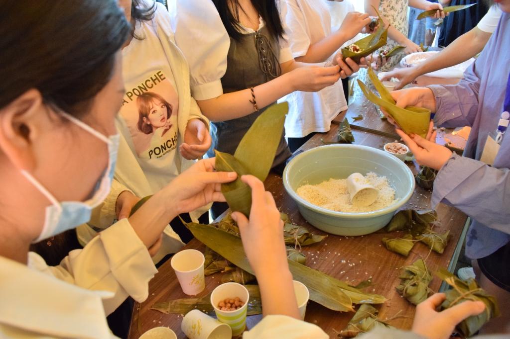 本次端午节活动分为了签到区、答题区、包粽子区、编彩绳区和缝香囊区。活动通过负责人动听的歌声吸引了许多同学的积极参加。同学们通过志愿者们的手把手教学,学会了如何包粽子、编彩绳、缝香囊,了解到端午节深厚文化内涵,也通过抢答环节,加深了对端午节的认识。