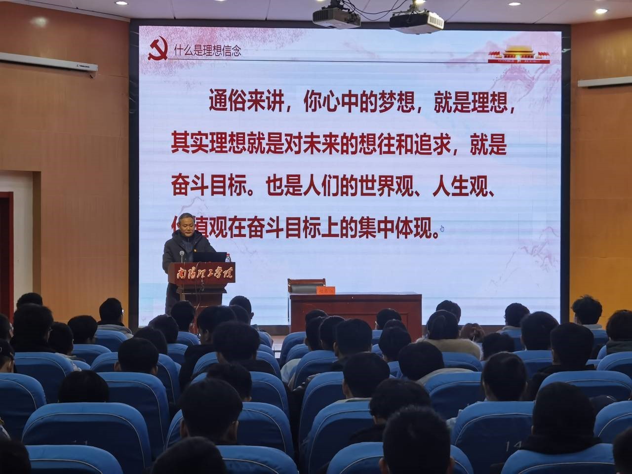 随后赵东江老师作第一讲:坚定理想信念跟党走。本次讲堂主要阐述了三个问题——新时代大学生为什么要坚定理想信念、新时代大学生为什么要坚定不移跟党走,新时代大学生如何坚定理想信念跟党走。他说:“面向未来,走好新时代的长征路,我们更需要坚定理想信念、拼搏奋斗。”