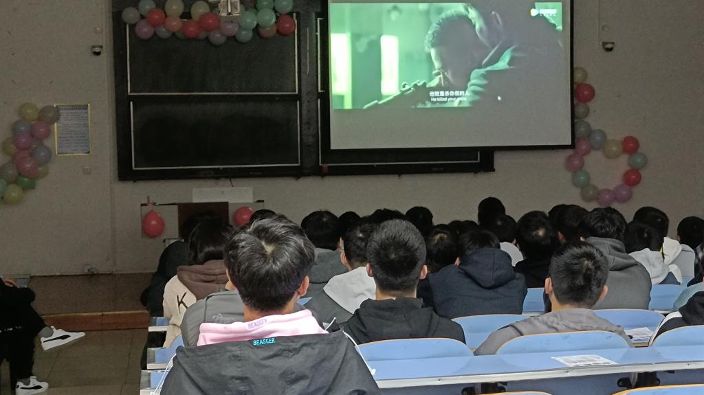 为品书香古韵,赏中华文化,我部为同学们播放了电影《八佰》,随着影片播放,活动缓缓的拉开了序幕,同学们也被影片深深地吸引了,目不转睛,十分专注;故事慢慢的走向高潮,看着抗日先辈的艰难奋战,同学们屏气凝神,不敢呼吸,被抗日先辈不怕牺牲的精神所震撼,其中一句“人各有命,军人有军人的命”,击中了同学的泪腺,默默留下了眼泪;“东北沦陷了,华北沦陷了,但是现在,因为有你们,上海还在!”正是革命先辈的艰苦奋斗,才有了我们现在的幸福生活,看着窗外闪烁的灯光,我们更应该铭记历史,勿忘国耻。随着时间的推移,电影接近尾声,同学们的心情却久久不能平静,《八佰》中的八百壮士是我们中华民族抗战到底的缩影,是精神力量的宣告!也让同学们明白了先辈烈士的艰苦卓越!