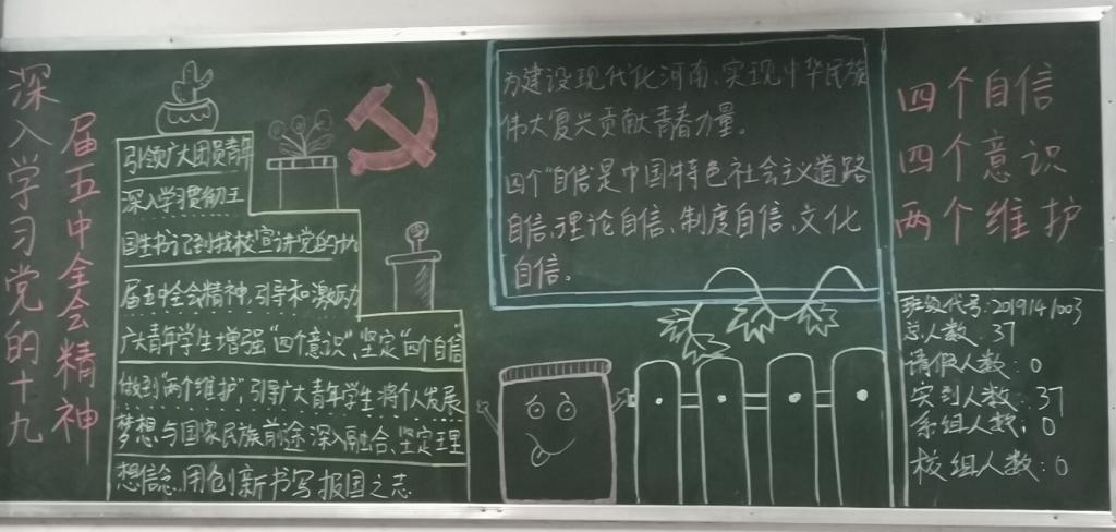 在这次的班会中,同学们都认真听讲,积极回答问题,在班会过程中积极讲述自己的理解,开展小组讨论,发表了自己看法,并且从中学习到了党的十九届五中全会精神,认识了‘’四个意识”、“四个自信”、“两个维护”的内容,从而更加地坚定理想信念,为建设现代化河南、实现中华民族伟大复兴贡献青春力量。