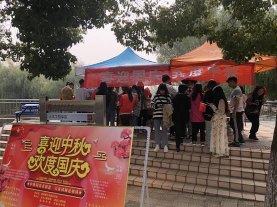 为庆祝新中国成立71周年及中秋佳节,借此契机激发青年学生的学习热情,开展爱国主义教育,弘扬中华民族传统文化精神,10月1号上午8时许,由南阳理工学院学生处主办,土木工程学院、信息工程学院、建筑学院、范蠡商学院承办的“喜迎国庆 共度中秋”线上线下有奖答题活动,在8号教学楼北侧成功举办。