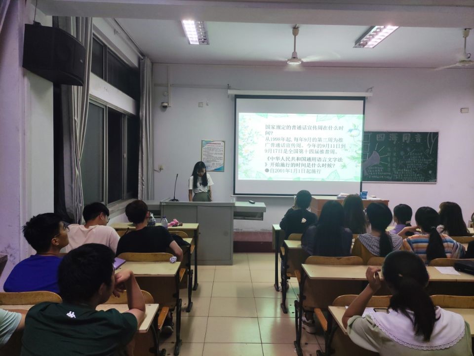 为进一步增强全体师生的语言文字规范意识、法制意识和推广普通话参与意识,发挥我校作为市语言文字示范校的积极作用,9月14日晚七时许,土木工程学院于5号教学楼开展“同讲普通话,携手进小康——大力推广和规范使用国家通用语言文字,自觉传承弘扬中华传统优秀文化”主题班会,全体同学参加本次班会。