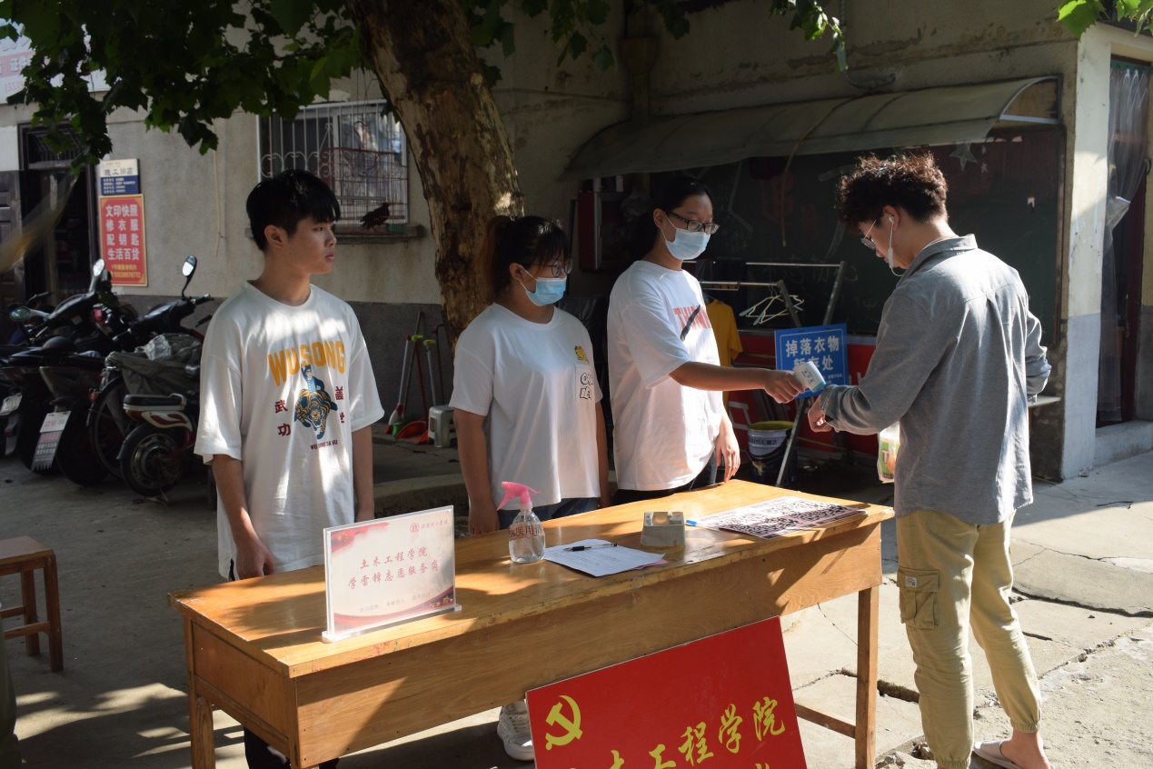 我院学生党员积极响应,组建了一支防疫工作党员志愿者队伍,驻守在学生宿舍下,为进出的同学进行消毒、测量体温、进宿登记和健康扫码,同学们的日常出入宿舍提供了极大的安全保障。