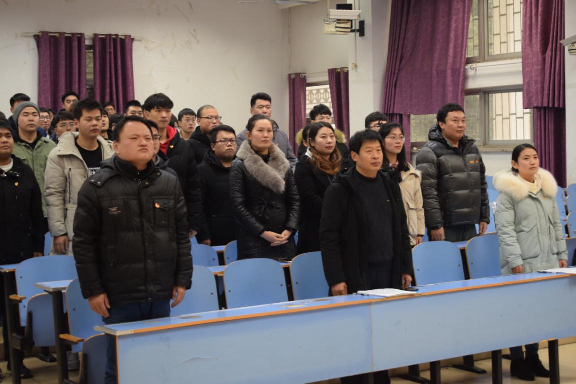 (组织部 文/李 瑞 于婉婷)12月24日,我院于五阶二举行入党宣誓仪式,出席本次宣誓仪式的领导有院党委书记杨庆年同志、党委副书记任朝斌同志、团学工作办公室主任冯博同志、专职组织员孙恰同志、各年级辅导员等,全体学生党员和2019年12月份新发展的24名预备党员参加。