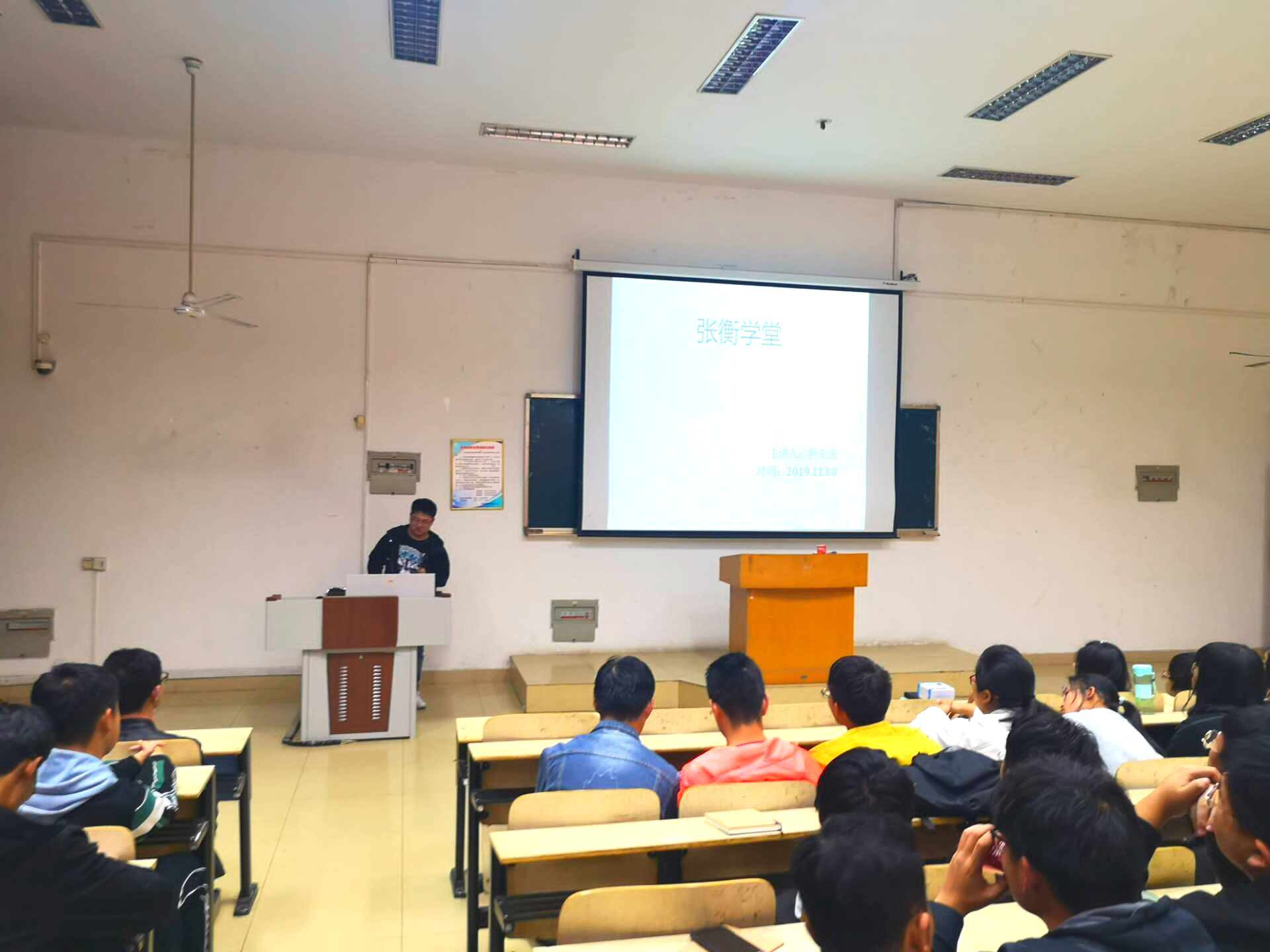 (资助管理中心 文/孙龙飞 图/孙龙飞)11月8日晚七时许,土木工程学院资助管理中心于七教七阶一教室成功举办张衡学堂第五讲。此次报告会的主讲人为16级道路桥梁与渡河工程班阮先虎,19级全体新生参加。