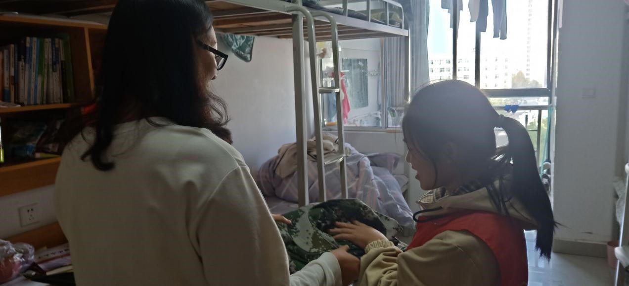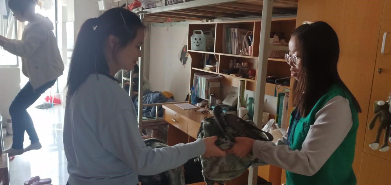下午两时许,志愿者们在学生公寓楼下集合,开展第一步工作,18级学长学姐带领19级新生上门回收迷彩服。同学们都很支持雷锋连工作,纷纷找出自己的军训服,很快便收集到了几大包裹,这都是同学们爱心的汇聚,即便有的只有一顶帽子,也都是同学们奉献精神的流露。接过军训服,叠好,放置整齐,迷彩服爱心捐赠活动也接近了尾声。