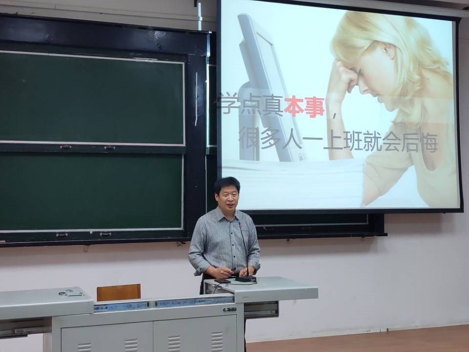 (宣传部 文/陈镜冰 图/马圣亚)9月18日晚七时,我院于五号教学楼五阶二教室和八号教学楼101教室举办“如何读大学”新生入学教育讲座,学院党委书记杨庆年和党委副书记任朝斌分别主讲, 2019级全体新生参加。