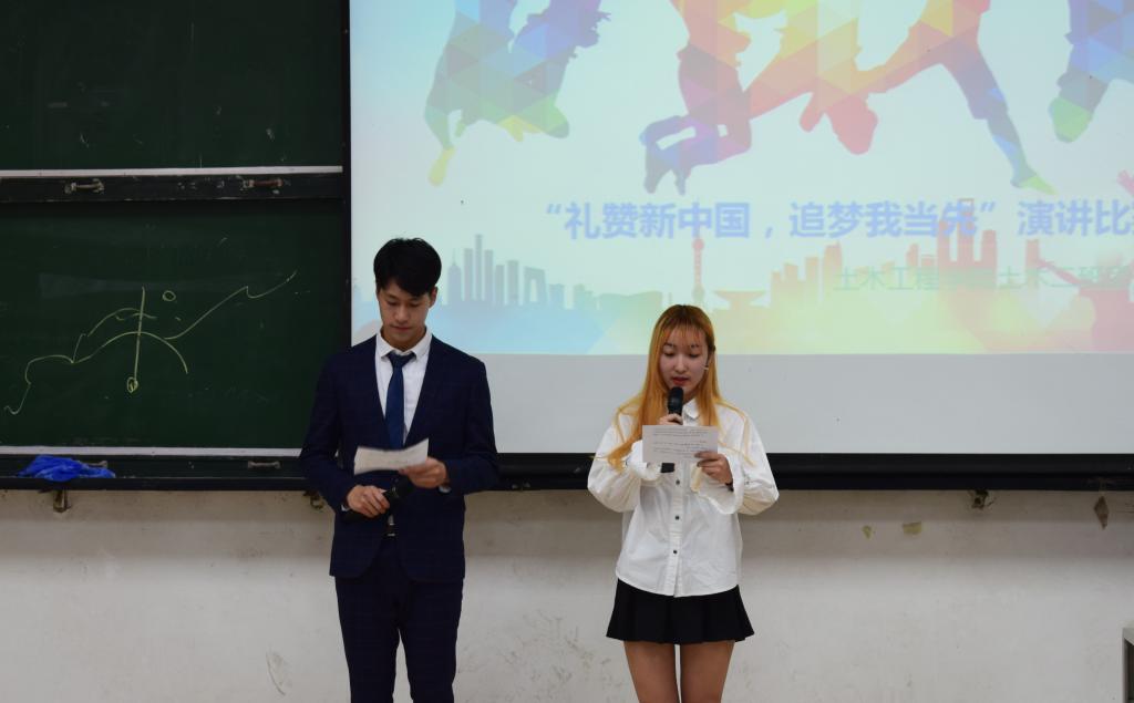 (宣传部 文/魏昊宇 图/赵瑞杰)为迎接新中国成立70周年,深刻领会习近平新时代中国特色社会主义思想,5月23日晚七时,土木工程学院“礼赞新中国,追梦我当先”演讲比赛于五号楼五阶一多媒体教室举办,本次大赛由曾诚和张蓓蕾同学担任主持人,参加此次演讲比赛的是18级全体同学。