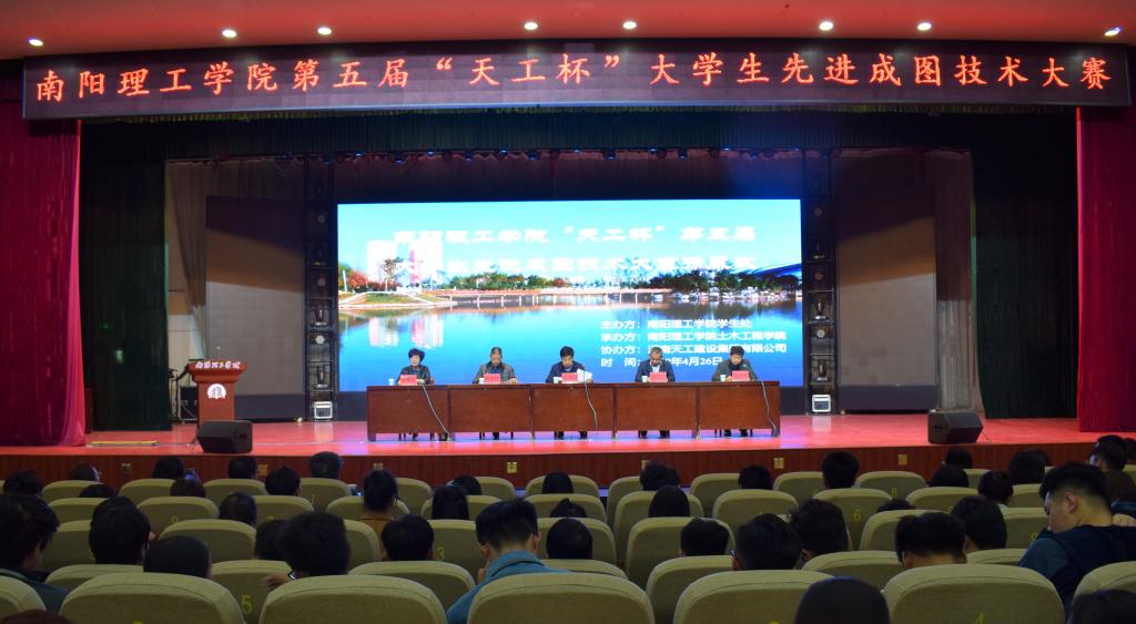 4月26日下午三时,南阳理工学院于西北校区毕业大厅举办第五届“天工杯”大学生先进成图技术与产品信息建模创新大赛开幕式,副校长肖泽昌老师、学生处副处长赵东江老师、土木工程学院院长陈孝珍老师、河南天工建设集团有限公司总工程师姚建林以及大赛指导老师出席了本次开幕式,全体参赛学生参加开幕式,开幕式由土木工程学院党委书记杨庆年老师主持。
