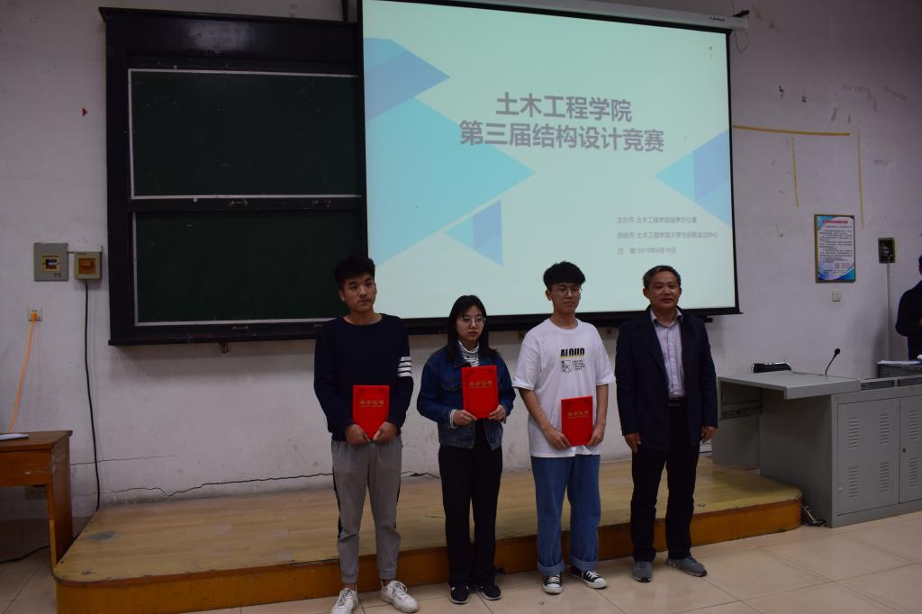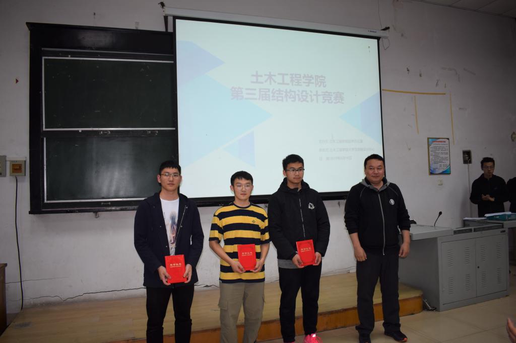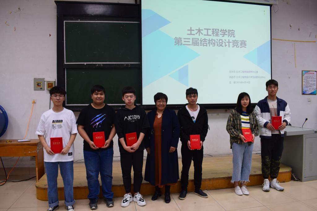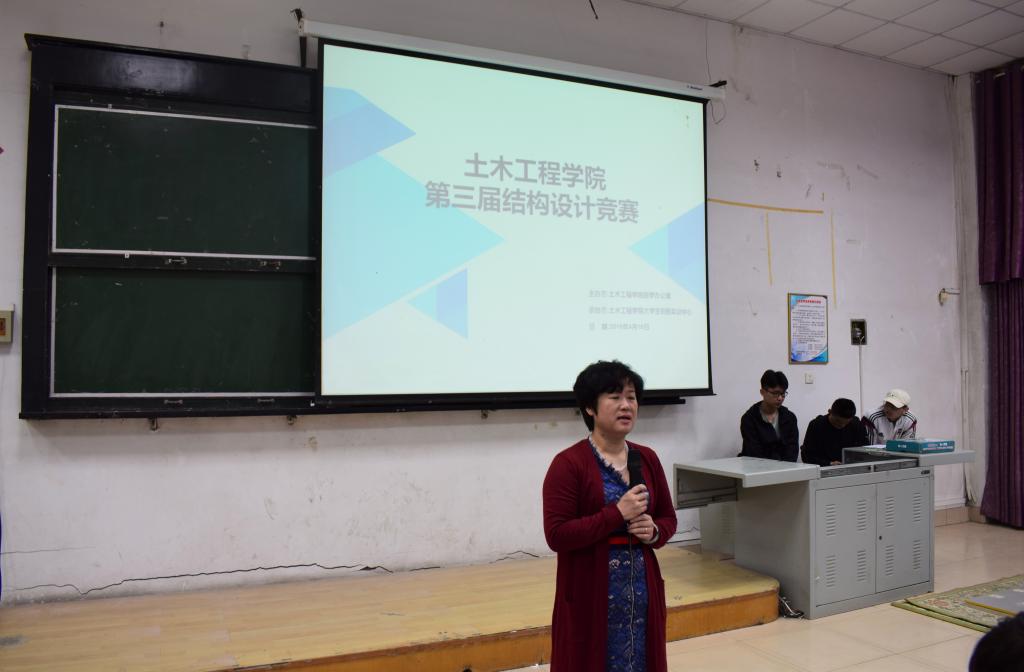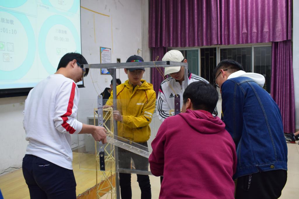(宣传部 文/崔梦真 图/李世敏)为提高同学们的实践能力和团体合作能力,4月16日晚七时,我院于五号教学楼五阶一多媒体教室举办结构设计竞赛,出席本次大赛的有南阳理工学院学生处副处长赵东江老师、土木工程学院院长陈孝珍老师、党委副书记任朝斌老师、结构教研室主任张树珺老师、力学教研室主任肖新科老师、吴帅涛老师、袁可佳老师、韩珏老师,我院17级、18级同学观看了本次大赛。本次比赛前有三十余个小组参与了初选,最终,有十四个参赛小组脱颖而出得到了站到赛场上的机会。