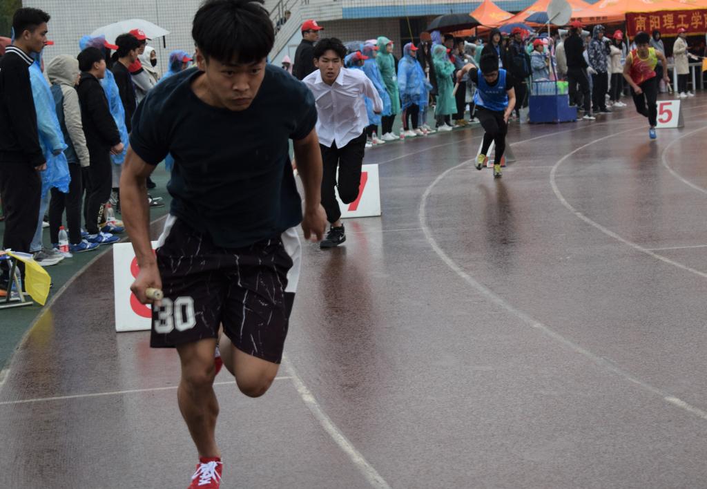 下午四时四十五分,学生男子组4×100米接力赛,一百米,是速度的较量;接力赛,是团结与默契的比拼。整场比赛中,我院选手们团结一心、奋勇拼搏。在赤色的赛道上,他们奋力奔跑的身影为这个春日增添了几分青春的朝气与活力;赛道外,同学们的呐喊助威之声不绝于耳,那激情澎湃的声音将整个场面渲染得无比热闹。比赛过程中,下起了淅淅沥沥的小雨,尽管路面湿滑,同学们在保证安全的同时,奋力向前,随着这场激烈的角逐,我院男子组以预赛第五名的成绩挺进决赛。